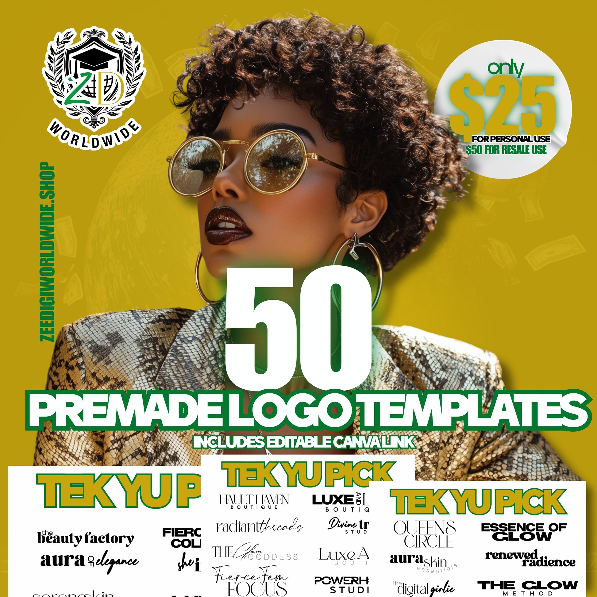 Create Your Brand: 50 Canva Logo Templates with Resale License Option