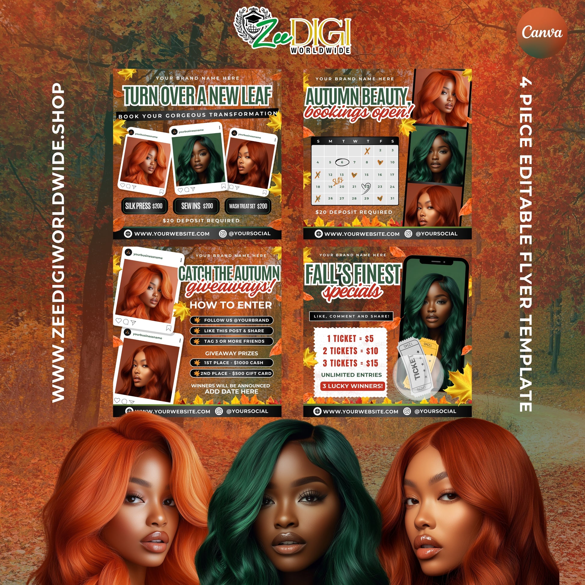 Catch the Fall Fever: 4-Piece Autumn Beauty Flyer Set – Perfect for Seasonal Marketing!