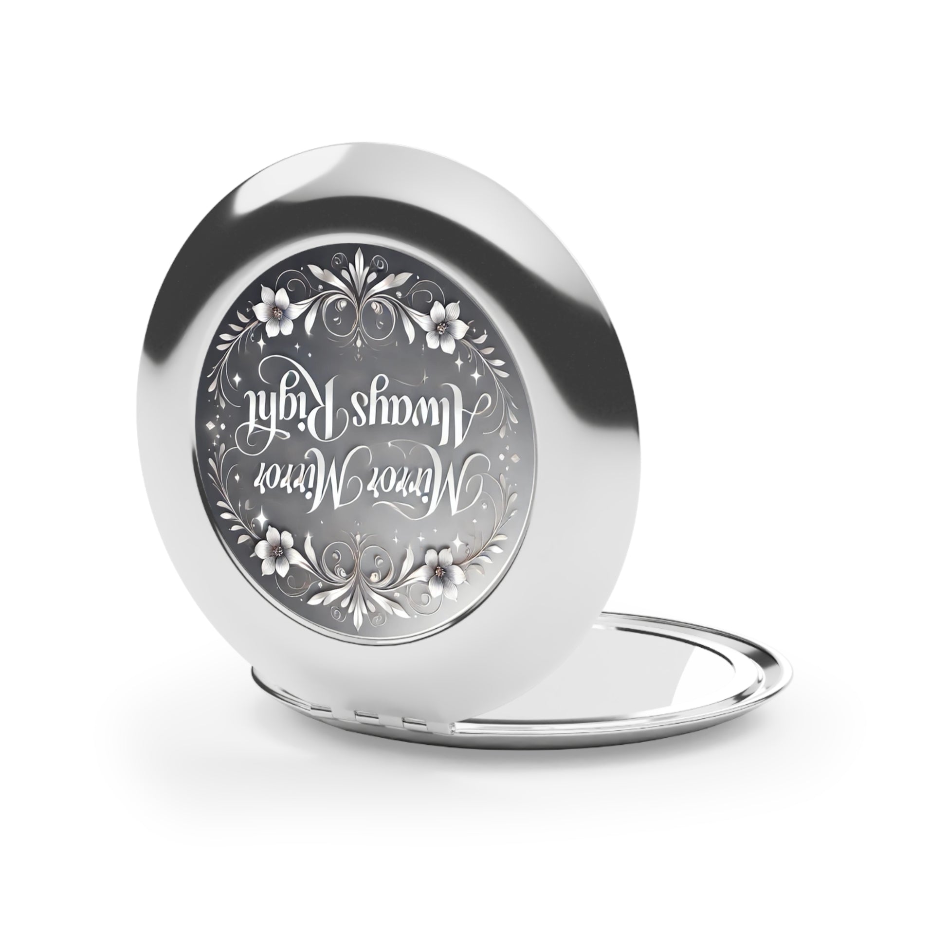 This personalized compact mirror is the perfect makeup gadget for touching up on the go. Made to be travel-friendly, cute, and shiny, it comes with a secure-snap friction closure, a sleek round shape and a metal finish for extra stylish points. Put your designs on the white metal insert and create the perfect travel makeup mirror.